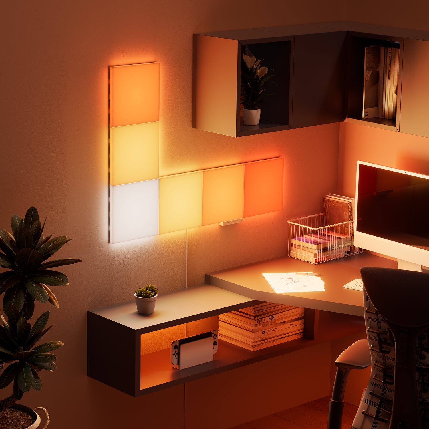 用 Nanoleaf Blocks 按照您的方式打造獨特的照明展示! 這套裝置配備大型正方形燈板,具有邊緣到邊緣的照明,讓您能夠用豐富多彩和動感的動畫燈光效果來點綴您的世界。