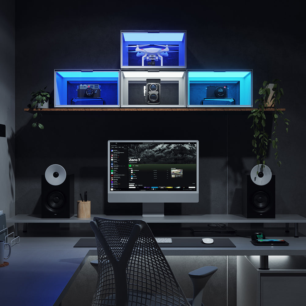 EXPO智能LED展示盒讓您的珍藏閃耀光芒,提供鮮豔的RGBW照明和有趣且實用的智能功能。